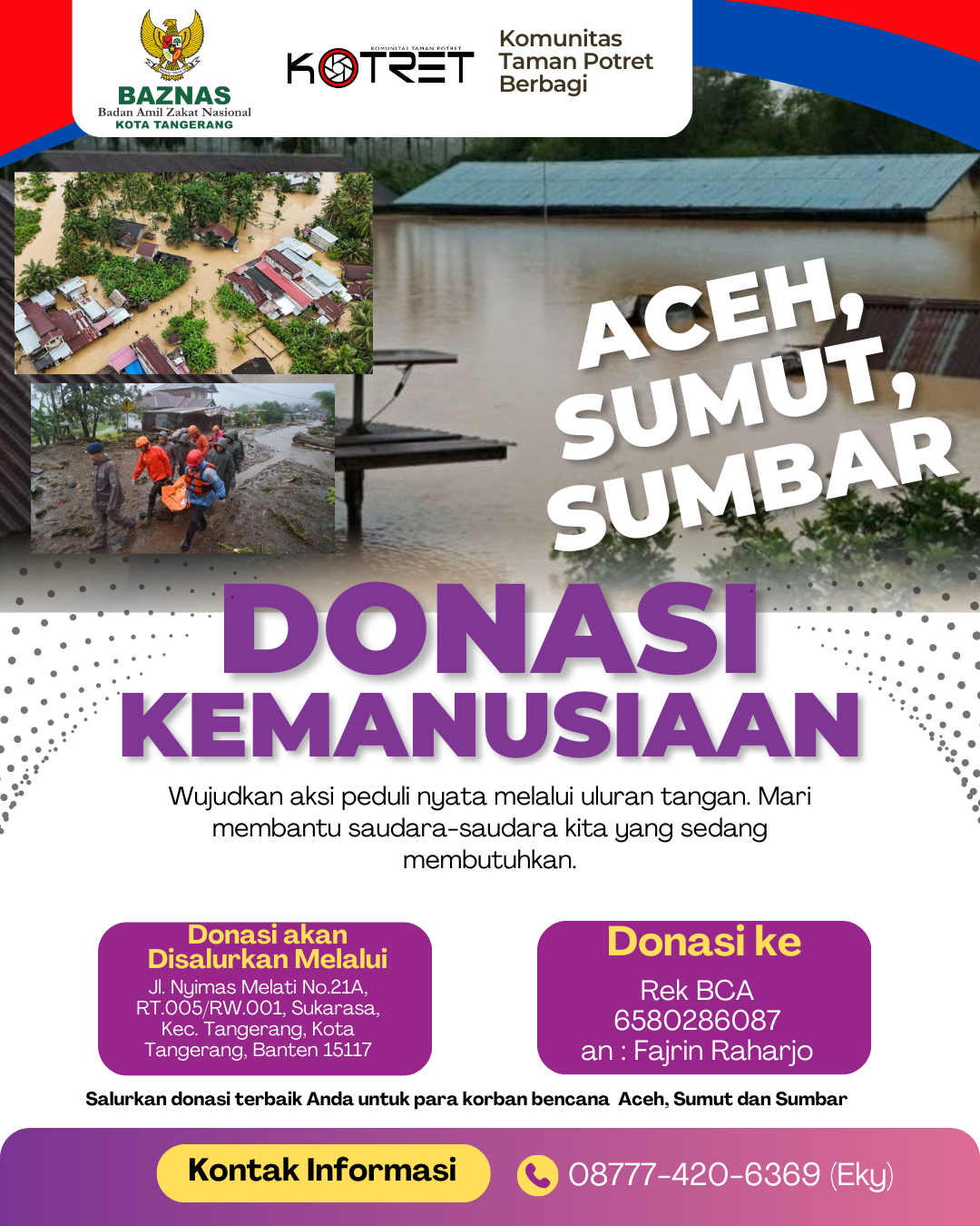 “Baznas kota Tangerang saat ini pun sudah membuka donasi untuk bantuan bagi warga terdampak banjir longsor di Aceh, Sumatera Barat, dan Sumatera Utara,”ujarnya.
