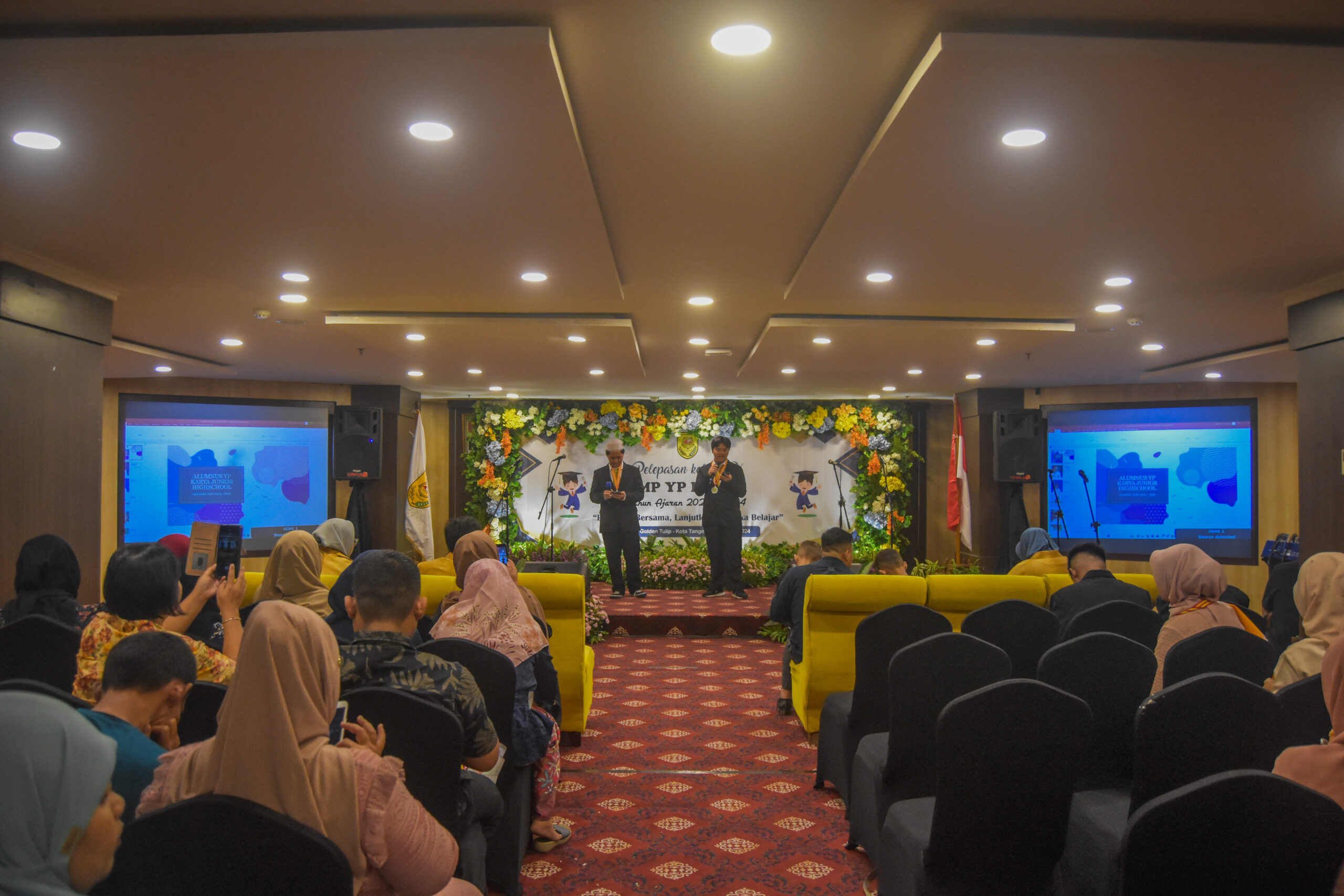 KOTA TANGERANG, LENSABANTEN.CO.ID – Sebanyak 30 siswa/siswi kelas IX tahun pelajaran 2023/2024 SMP YP Karya Kota Tangerang mengikuti perpisahan dan pelepasan di Hotel Golden Tulip Essential, Kota Tangerang, Banten, Sabtu, 23 Juni 2024.