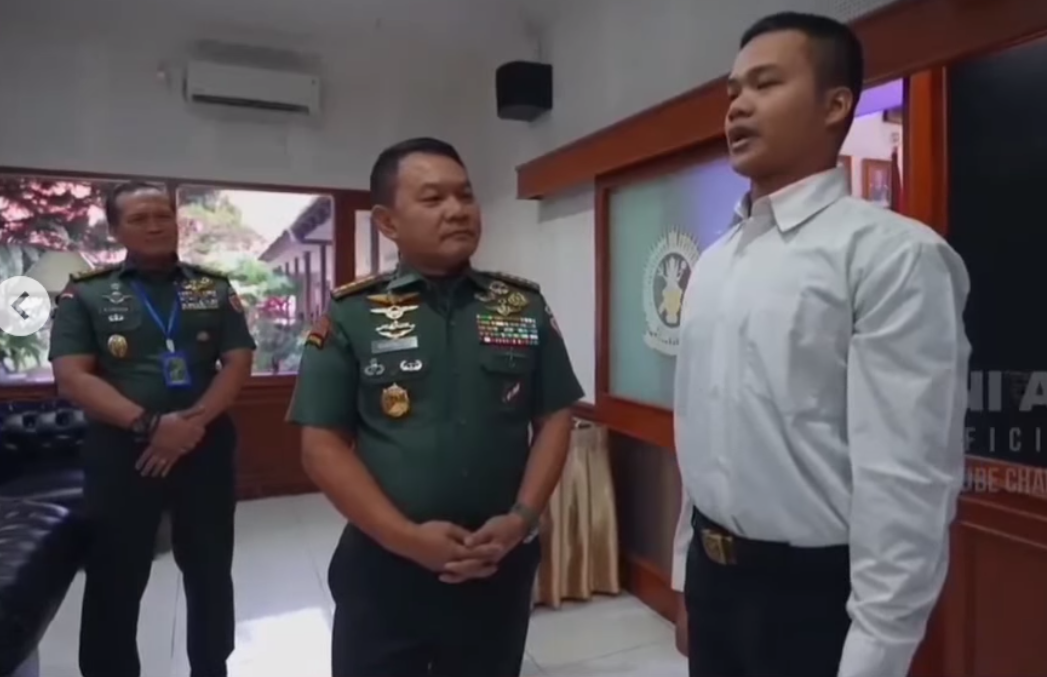 KABUPATEN LEBAK, LENSABANTEN.CO.ID – Raffi Atia, seorang pemuda berusia 21 tahun asal Lebak, Banten, mendapatkan apresiasi dari Kepala Staf Angkatan Darat (Kasad) Jenderal Dudung Abdurachman atas keputusannya mendaftar menjadi anggota TNI.