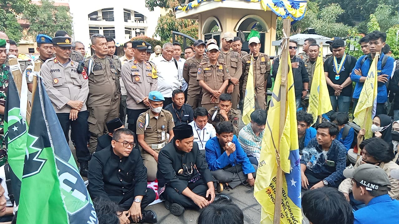 Aksi yang dijaga ketat oleh Satpol PP, Polisi dan TNI ini sempat ricuh, namun akhirnya peserta aksi ditemui langsung oleh Pj Wali Kota Tangerang Dr. Nurdin.