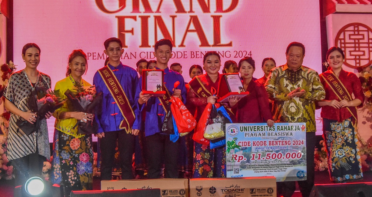 KOTA TANGERANG, LENSABANTEN.CO.ID – Yayasan Cide Kode Benteng untuk kelima kalinya menggelar pemilihan Cide Kode Benteng 2024. 10 muda-mudi terpilih untuk menjadi duta pelestarian budaya Cina Benteng di Tangerang pada puncak acara Malam Finalis Cide Kode Benteng 2024 di menara Top Food, Alam Sutera, Pinang, Kota Tangerang, Sabtu, 16 Maret 2024 malam.