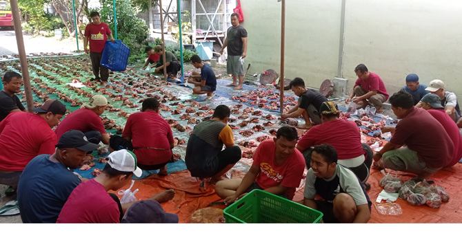 Usai pelaksanaan salat Iduladha, dilanjutkan dengan pemotongan hewan kurban, kemudian daging-daging hewan kurban yang telah dipotong menjadi 565 bungkus kemudian dibagikan kepada seluruh warga setempat yang membutuhkan sebagai wujud dari ajaran berbagi kebahagiaan dalam Islam.