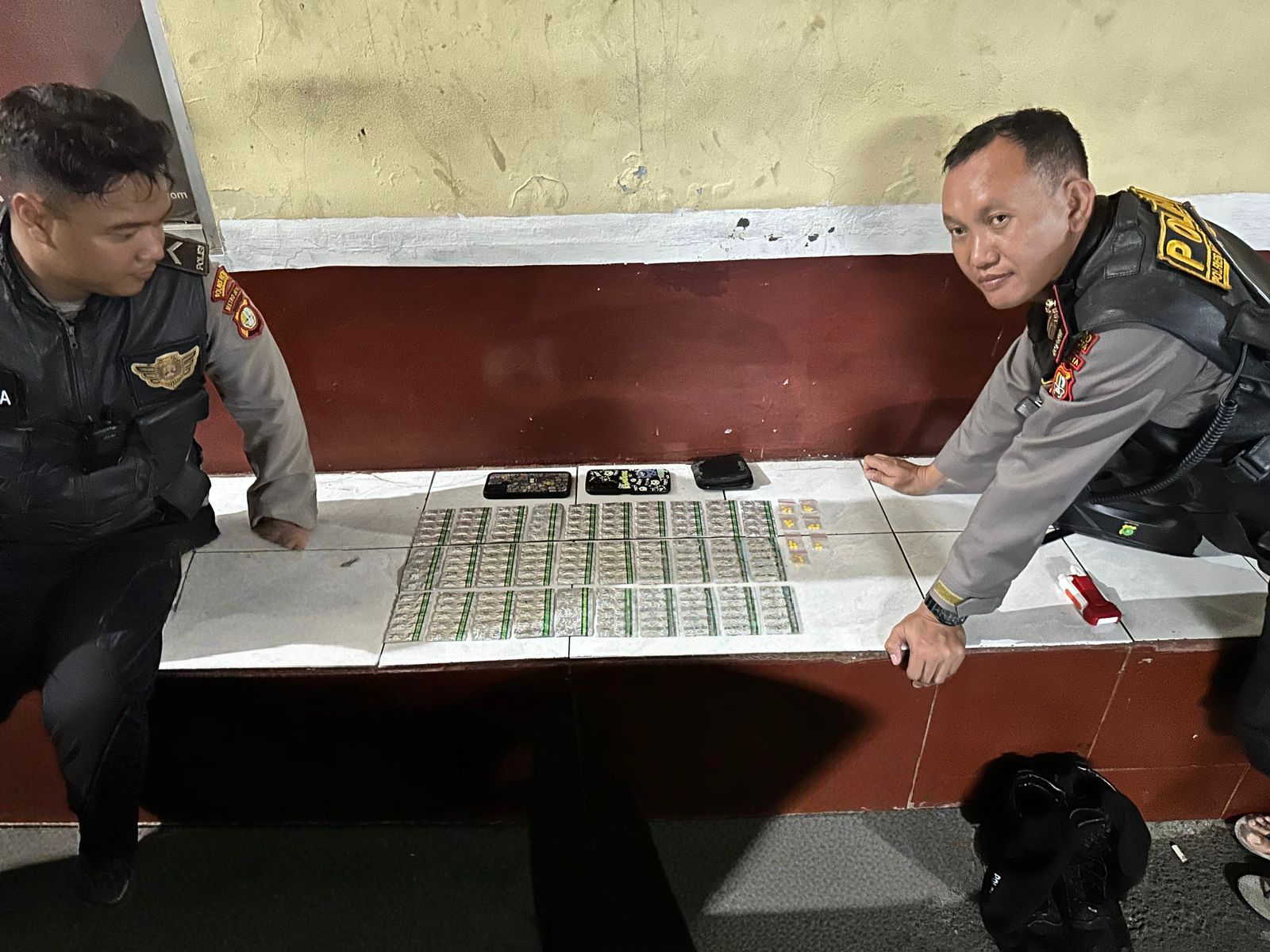 Kendaraan kemudian diberhentikan dan dilakukan pemeriksaan. Hasilnya, petugas menemukan tas selempang yang disembunyikan di balik jaket, berisi ratusan butir obat keras.