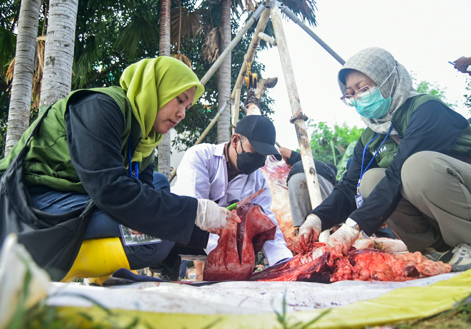 Balai Besar Pengujian Mutu dan Sertifikasi Obat Hewan (BBPMSOH) Kementerian Pertanian bersama Dinas Ketahanan Pangan (DKP) Kota Tangerang melakukan pemeriksaan hewan qurban sumbangan Presiden Prabowo Subianto untuk memastikan kelayakan daging hewan qurban serta keamanan sebelum dikonsumsi masyarakat. Foto : Ilham Herda Fauzi/LENSABANTEN