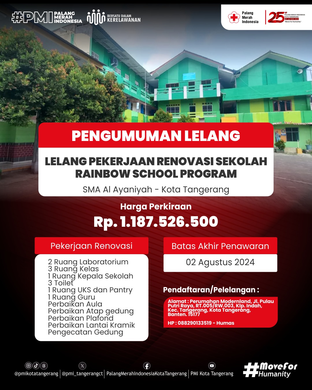 KOTA TANGERANG, LENSABANTEN.CO.ID –– Palang Merah Indonesia (PMI) Kota Tangerang resmi membuka pelelangan umum bagi para kontraktor yang berminat untuk melaksanakan renovasi gedung SMA Al Ayaniyah.