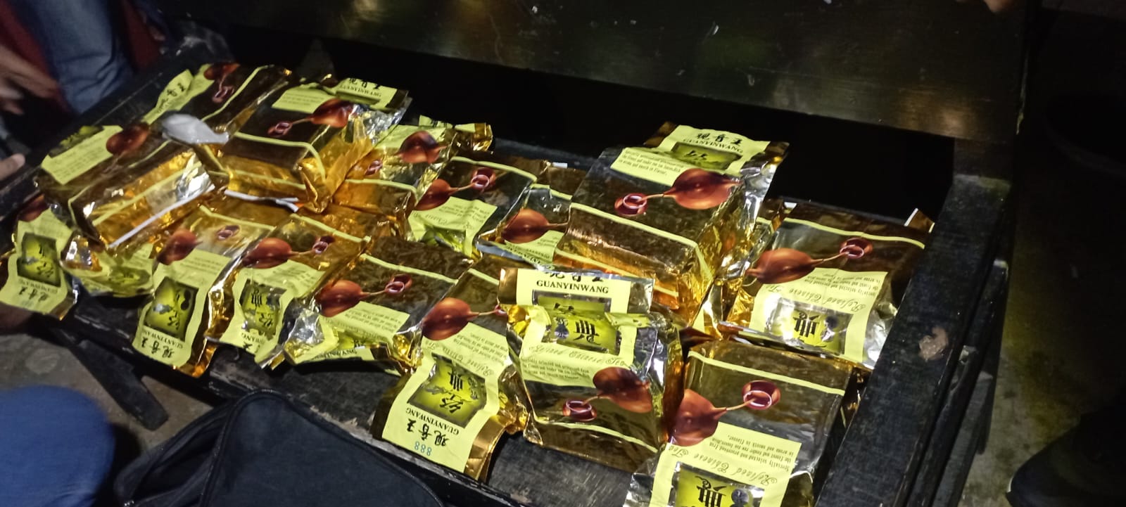 Dalam penggeledahan, ditemukan 20 bungkus sabu yang dikemas dalam plastik teh Cina warna kuning merek Guanyinwang, dengan berat total 20 kg.