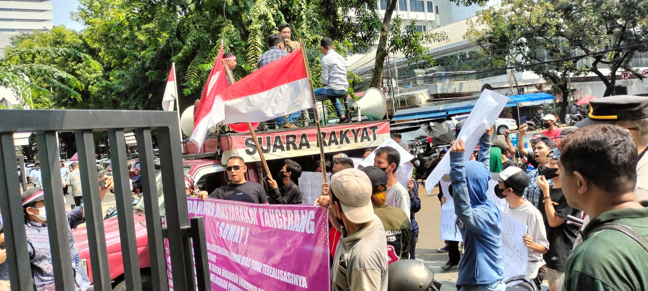 Akhirnya ratusan massa dari Solidaritas Masyarakat Tangerang (Somat) menggeruduk kantor Kementerian Pekerjaan Umum dan Perumahan Rakyat (PUPR) di kawasan Jakarta Selatan, pada Rabu 29 Mei 2024.