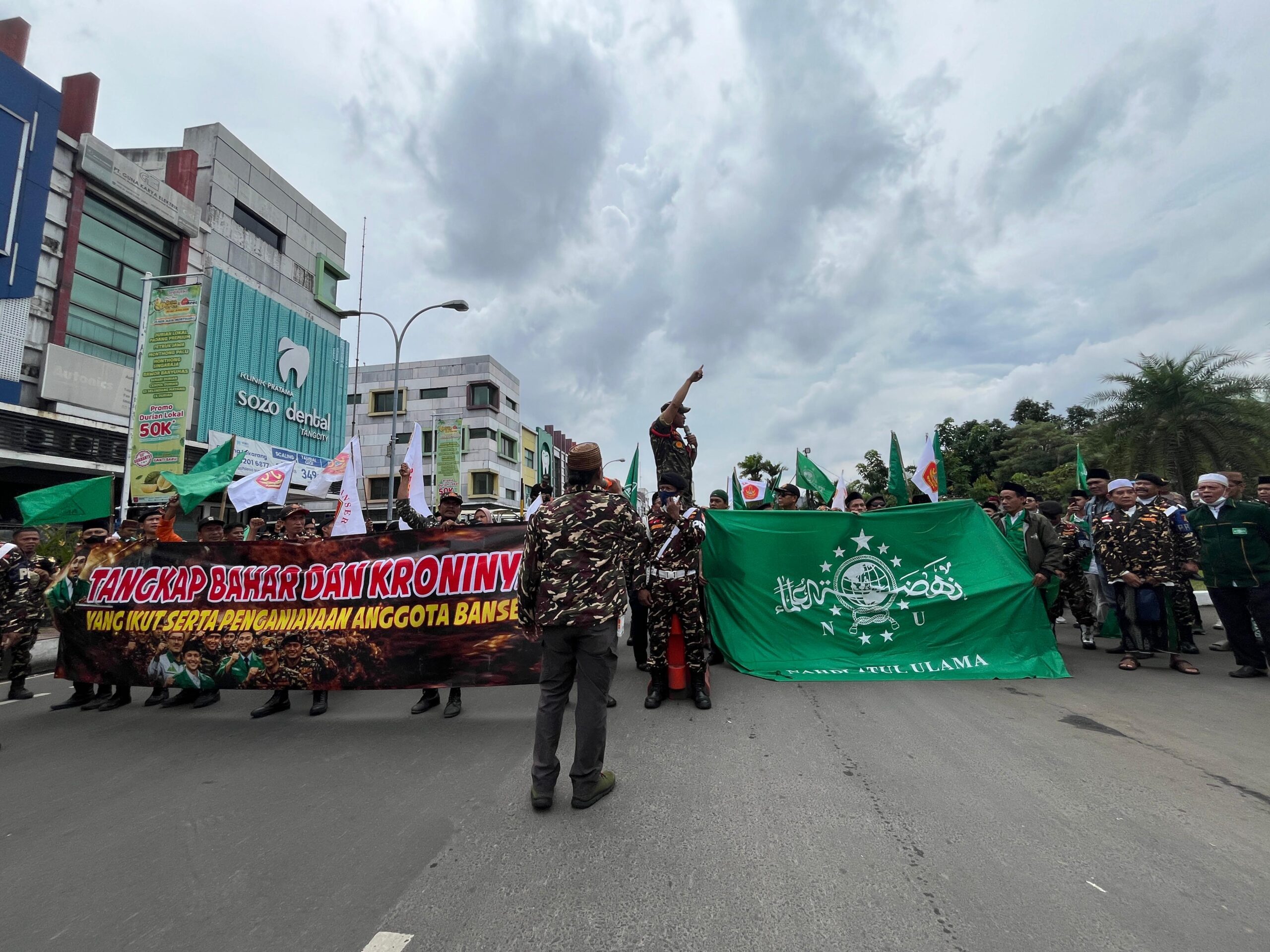Aksi dari ratusan Banser ini berlangsung tertib dan kondusif diisi dengan doa bersama, juga pengawalan internal serta aparat kepolisian, walaupun jalan sempat ditutup sekitar 60 menit. Massa menyampaikan aspirasi secara damai sebagai bentuk solidaritas dan kepercayaan terhadap proses hukum.
