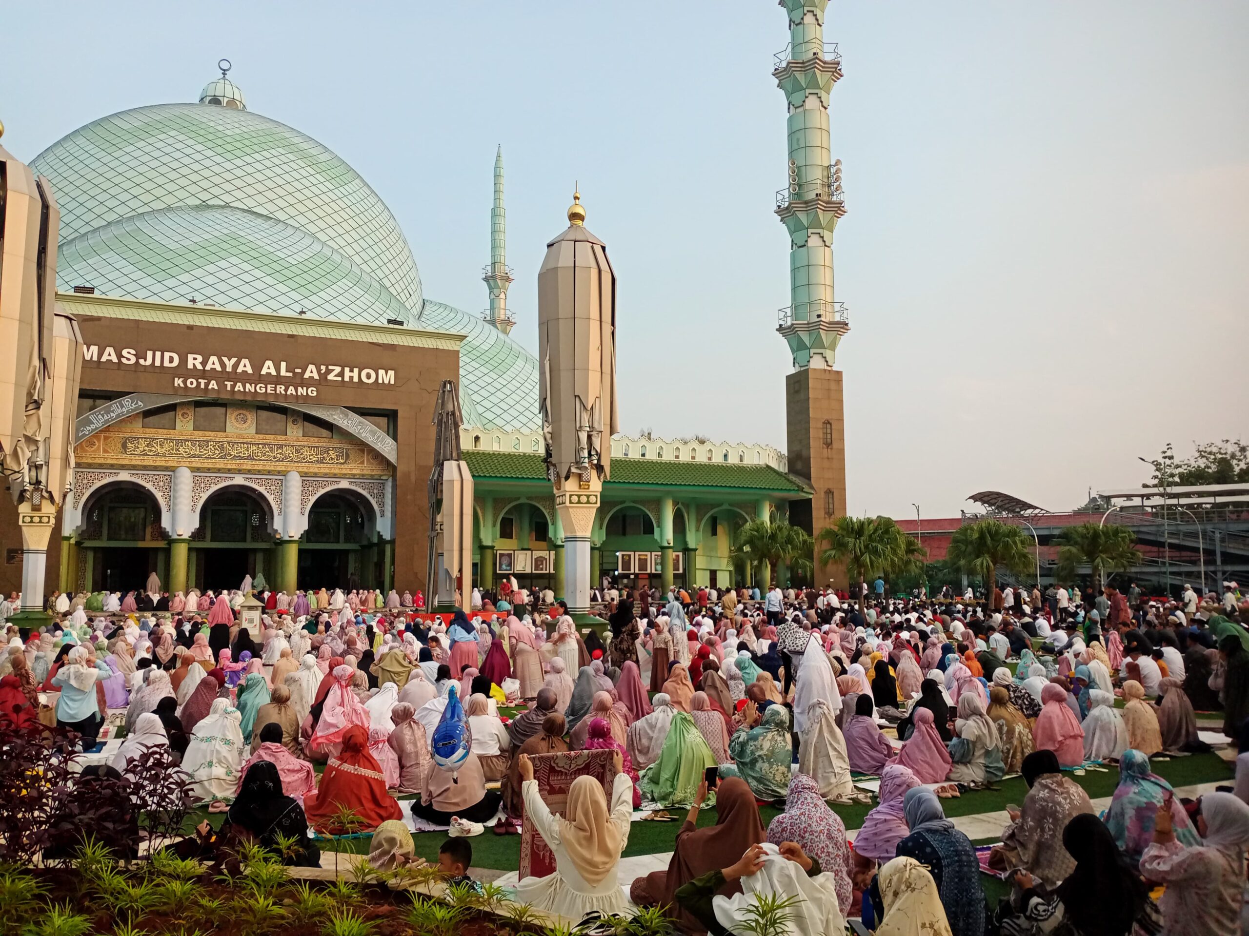 KOTA TANGERANG, LENSABANTEN.CO.ID- Suasana khidmat menyelimuti pelataran Masjid Raya Al-Azhom, Kota Tangerang, saat ribuan umat Islam memadati area masjid untuk melaksanakan Salat Idul Adha 1446 Hijriah. Sejak pukul 06.00 WIB, warga dari berbagai wilayah di Kota Tangerang mulai berdatangan untuk menunaikan ibadah tahunan yang penuh makna ini.