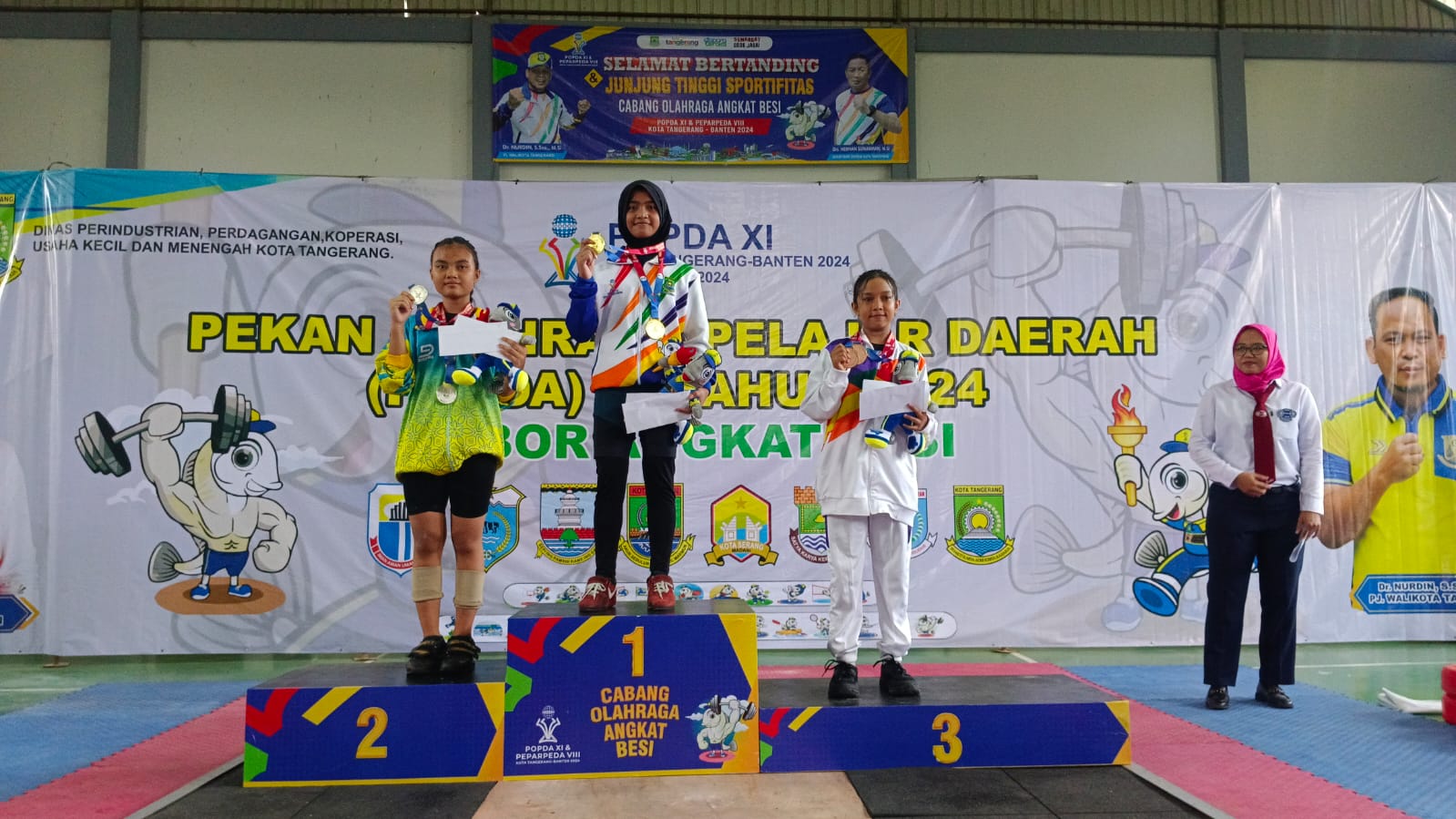 KOTA TANGERANG, LENSABANTEN.CO.ID – Atlet angkat besi Kota Tangerang Bellen Sharapova dan Umi Nabila menambah raihan medali emas di POPDA XI Banten. Empat medali disumbangkan melalui kategori pertandingan snatch dan clean and jerk.