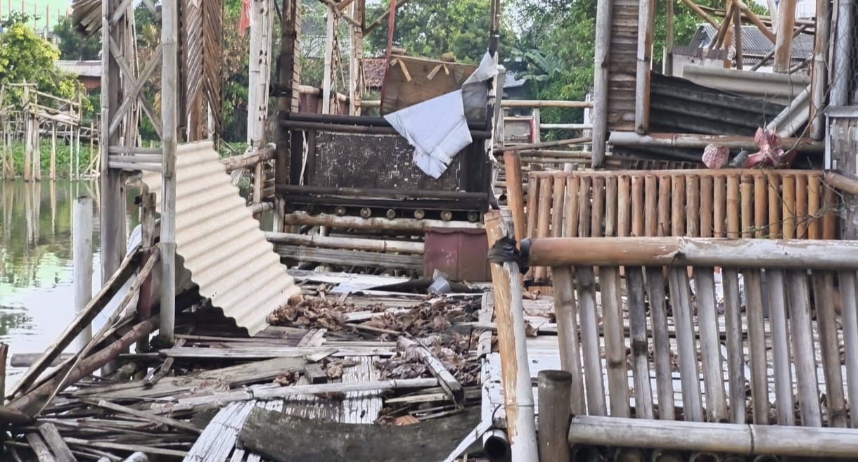 Berdasarkan pantauan Lensa Banten di lokasi pada Rabu, 8 April 2026 siang, deretan bambu di tepi Danau Cipondoh tampak rusak parah. Hampir seluruhnya sudah tidak layak digunakan karena kondisinya yang rapuh.