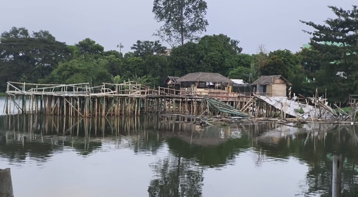 Bambu-bambu tersebut diketahui telah lama lapuk karena terendam air dan terpasang langsung dari dasar danau. Selain itu, banjir yang kerap datang turut memperparah kerusakan.