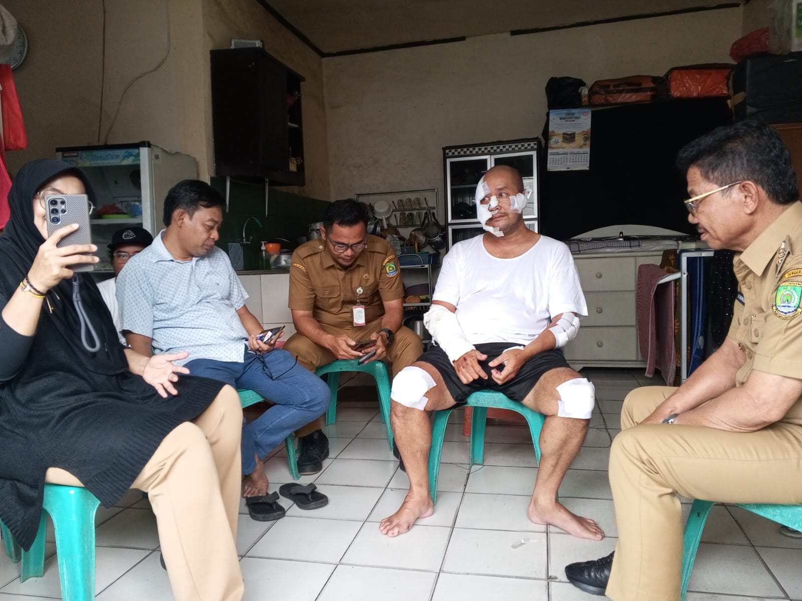 TANGERANG, LENSABANTEN. CO. ID- Wali Kota Tangerang Sachrudin mengunjungi pewarta foto Adrianto yang tengah sakit usai mengalami kecelakaan saat berkendara roda dua beberapa waktu lalu. Kota Tangerang, Senin, 9 Februari 2026.